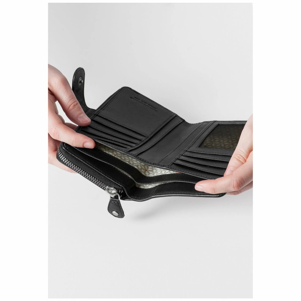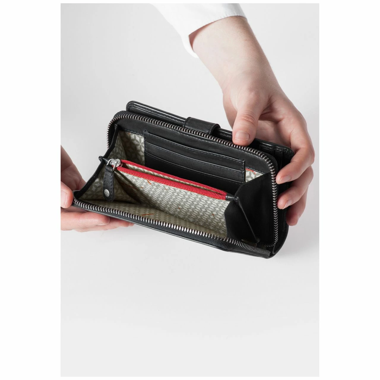 - Separates, geteiltes Münzfach mit umlaufendem Reißverschluss
