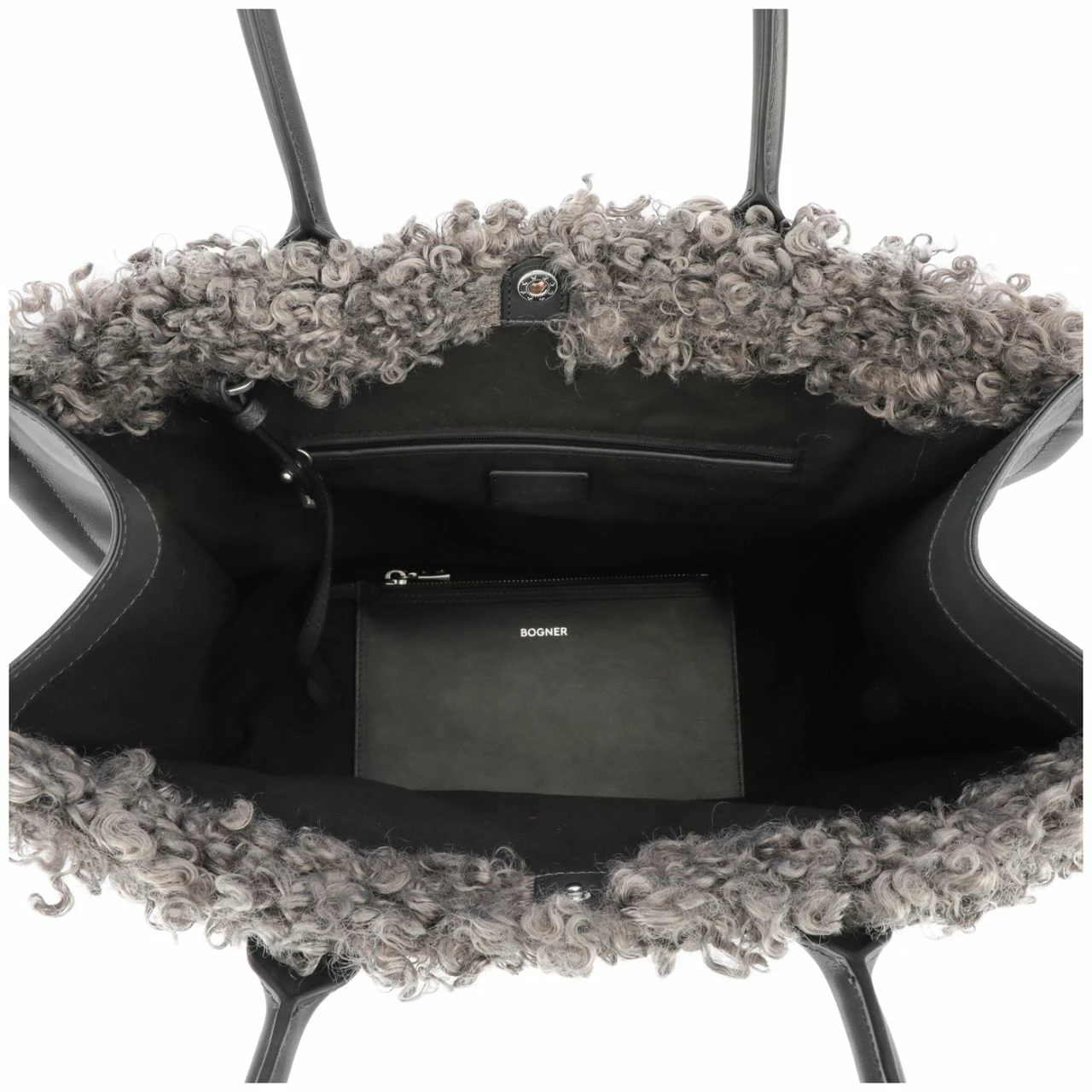 - Hauptfach schließt mit einem Druckknopf