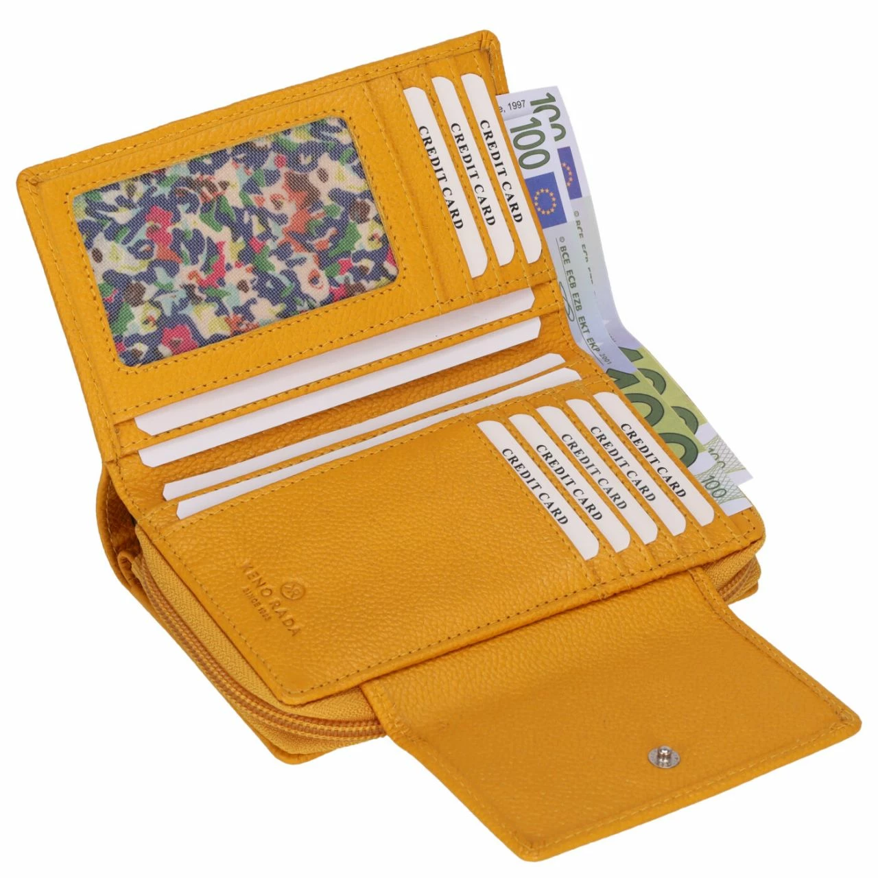 - Geteiltes Münzfach mit Reißverschluss