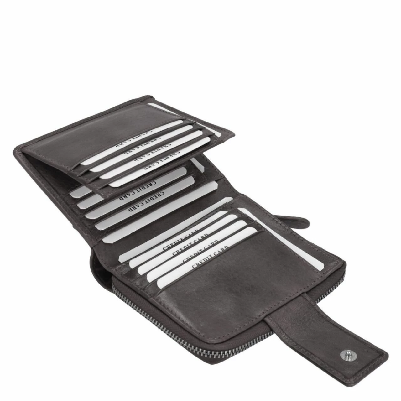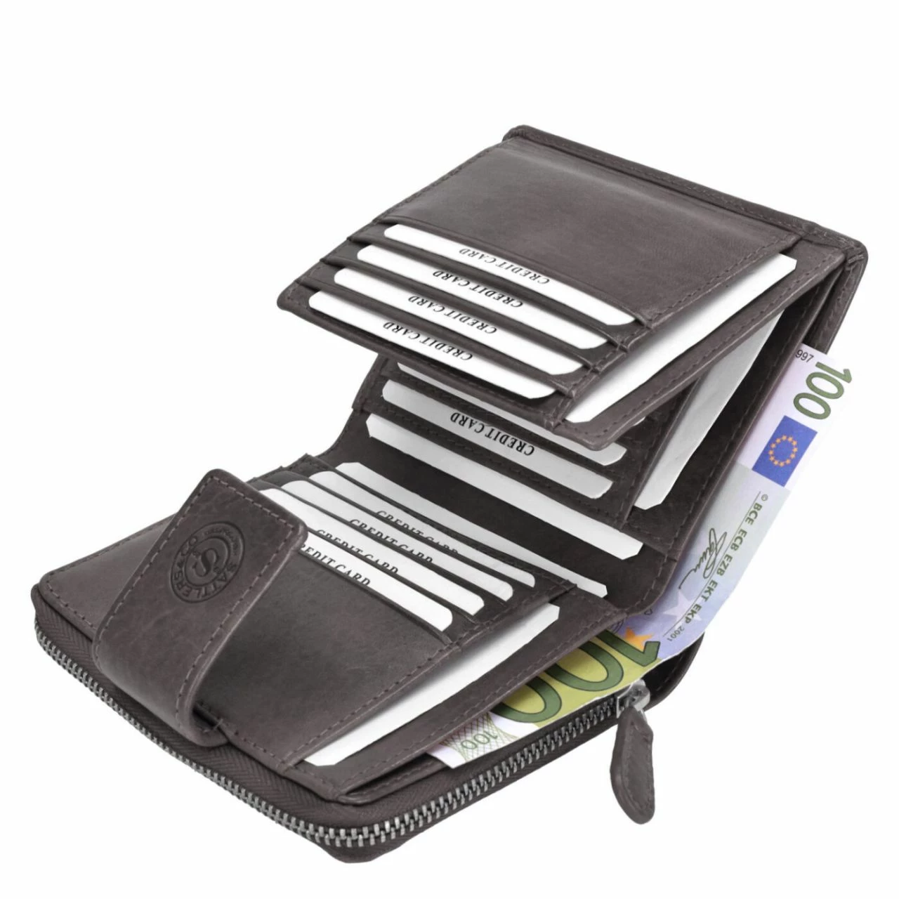 - Separates, geteiltes Münzfach mit umlaufendem Reißverschluss
