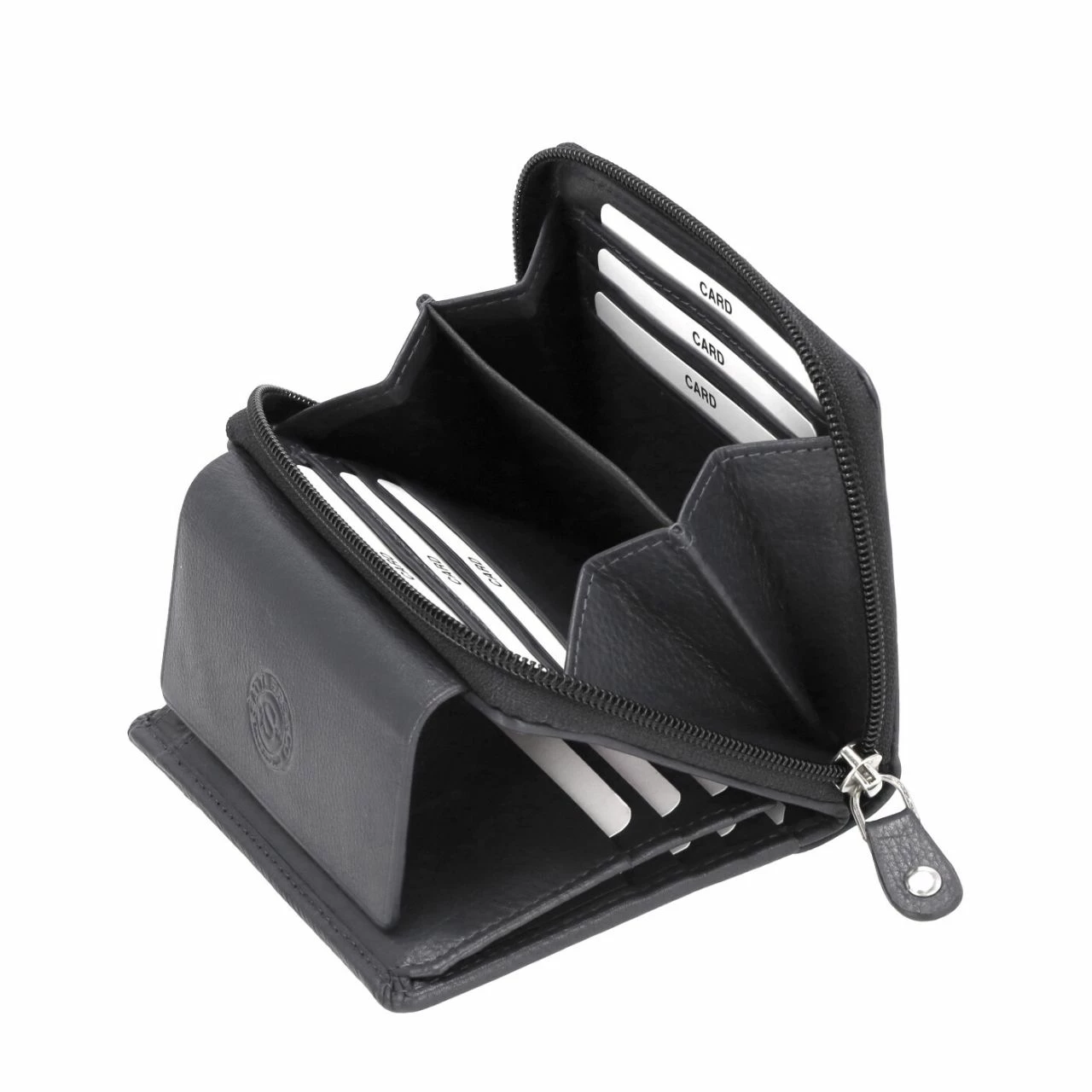 - Separates, geteiltes Münzfach mit umlaufendem Reißverschluss