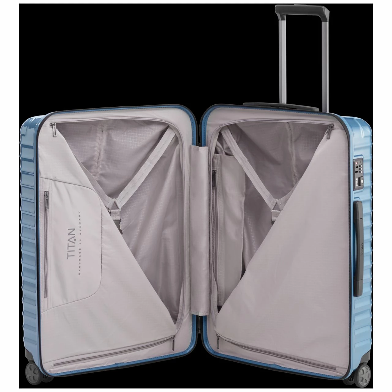 - Koffer lässt sich in beiden Kofferhälften befüllen