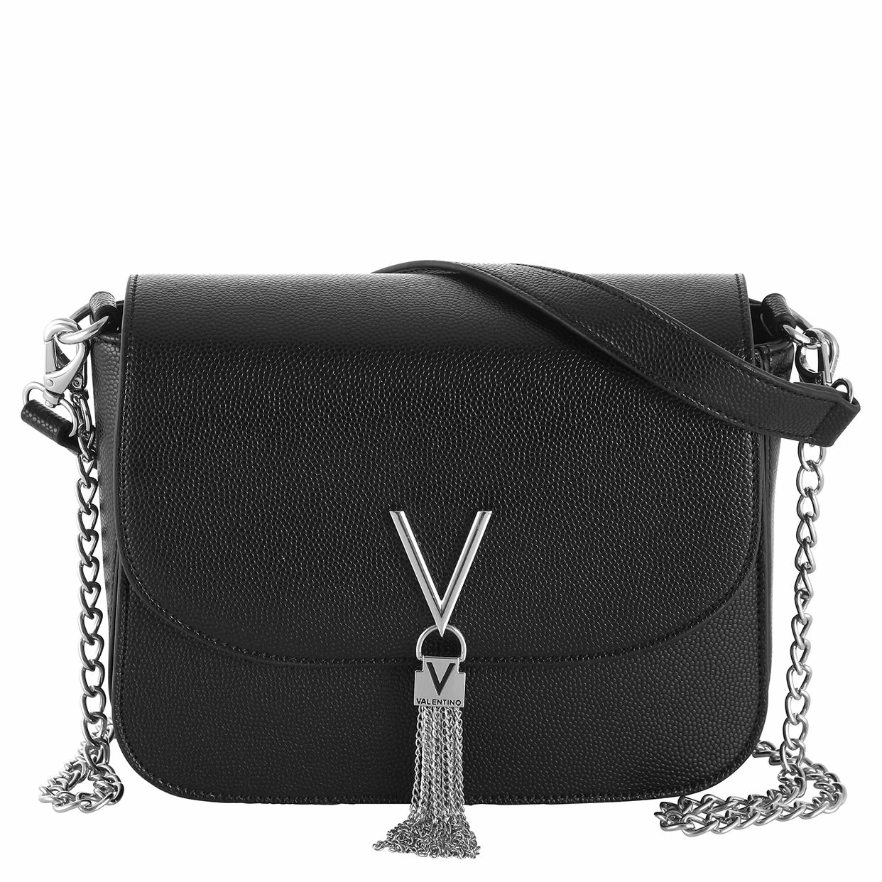 Die Valentino Divina Kurzgrifftasche aus fein strukturiertem Kunstleder lässt sich mit abnehmbarem Tragegriff sowie Schulterriemen variabel auf beliebige Art tragen.