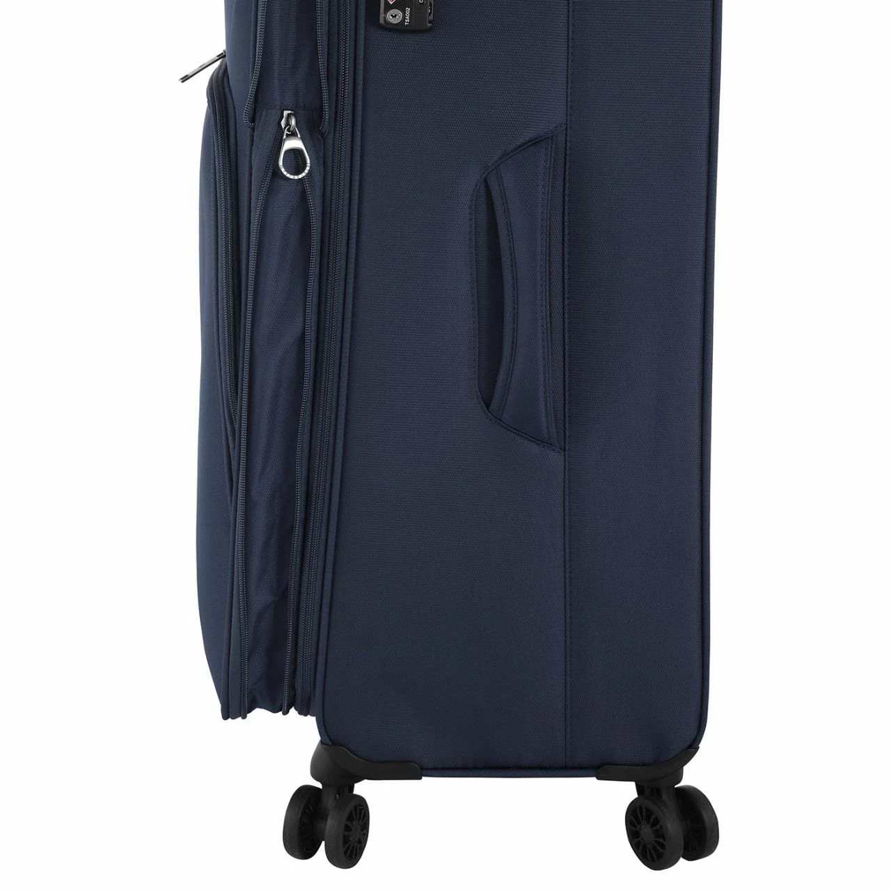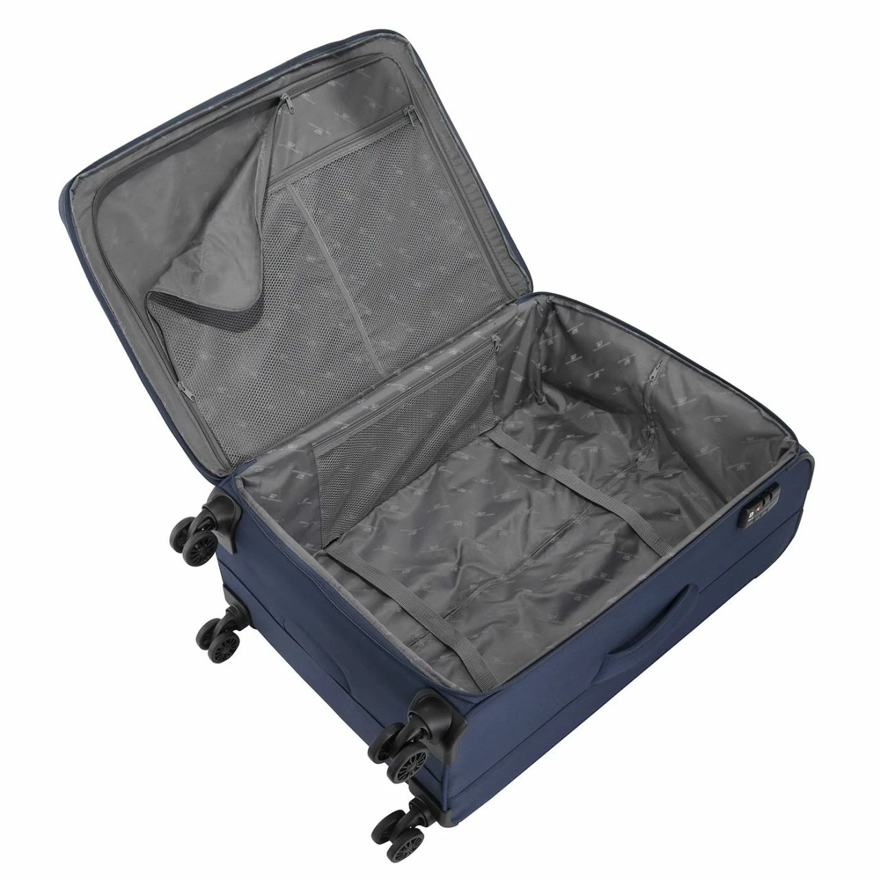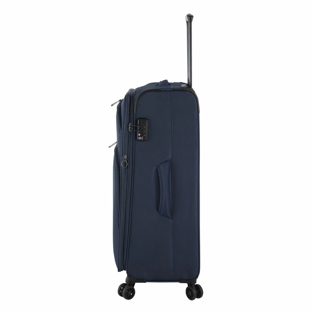 Ausgestattet mit 4 Doppelrollen, ist die Fortbewegung des Trolleys geradezu spielend leicht. Das Teleskopgestänge kann auf zwei Stufen arretiert werden und passt sich so perfekt an Ihre Größe an. Ebenso praktisch sind die beiden Reißverschluss-Außenfächer und das TSA Schloss, mit dem das Hauptfach des Koffers verschlossen wird. Zwei Tragegriffe am Koffer runden das optische Erlebnis auf der Außenseite ab.